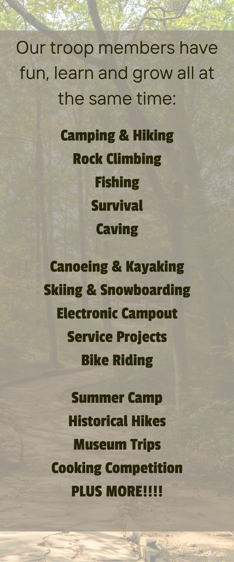 If you're ready to have fun, take charge, and make a difference—come be a part of Troop 56!